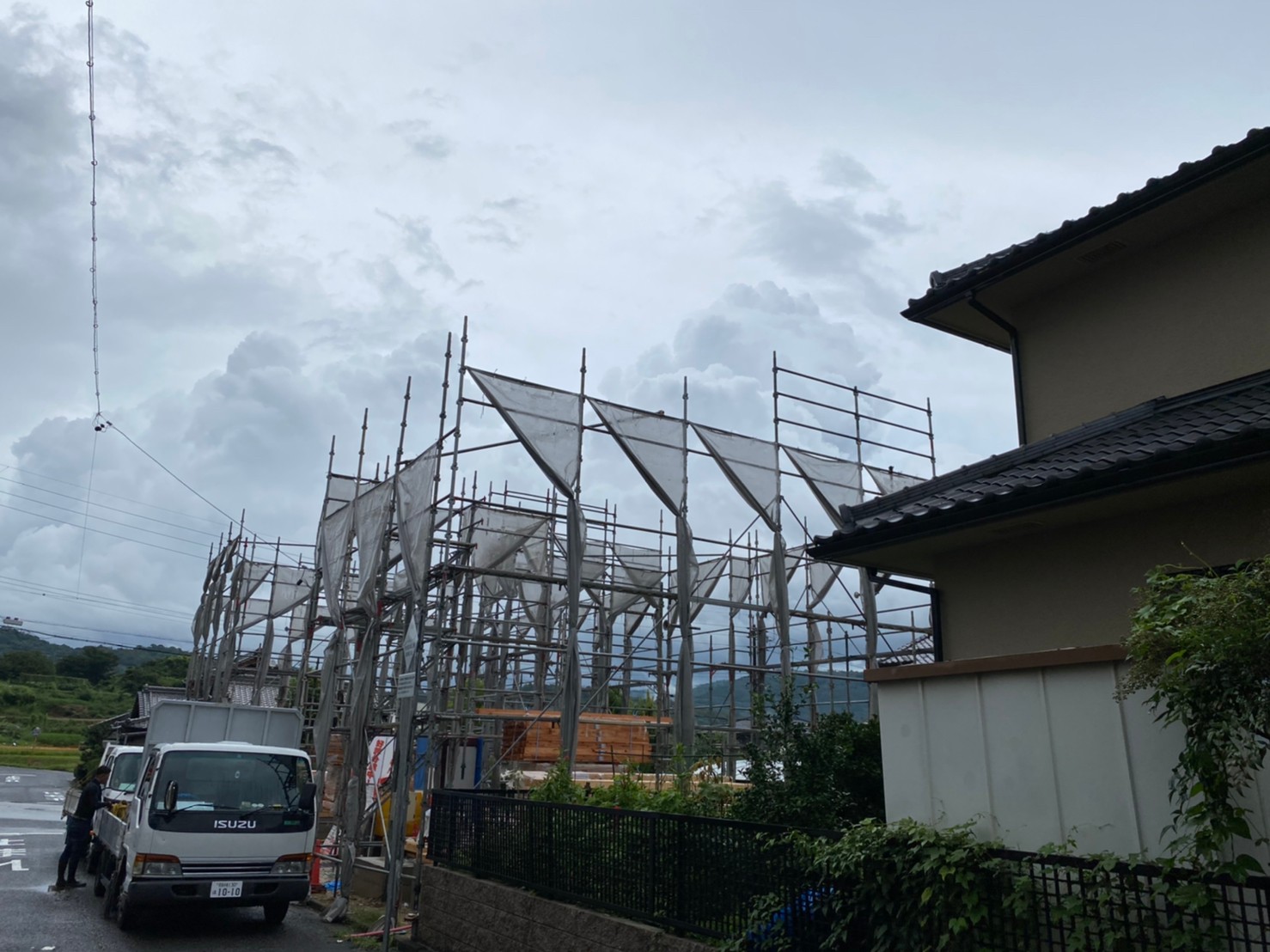 新築工事の足場を組みました。