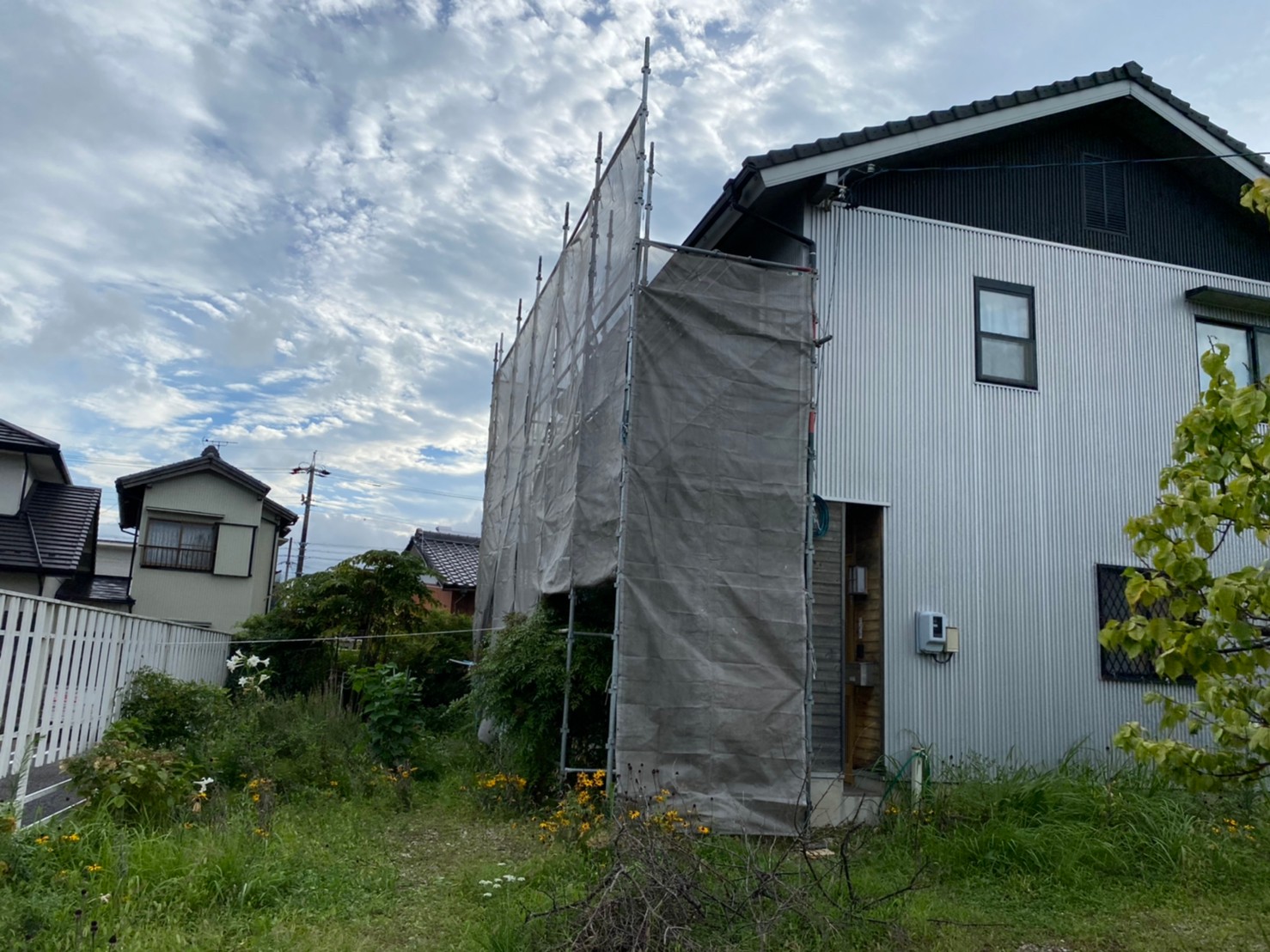 改修工事の足場を組みました。