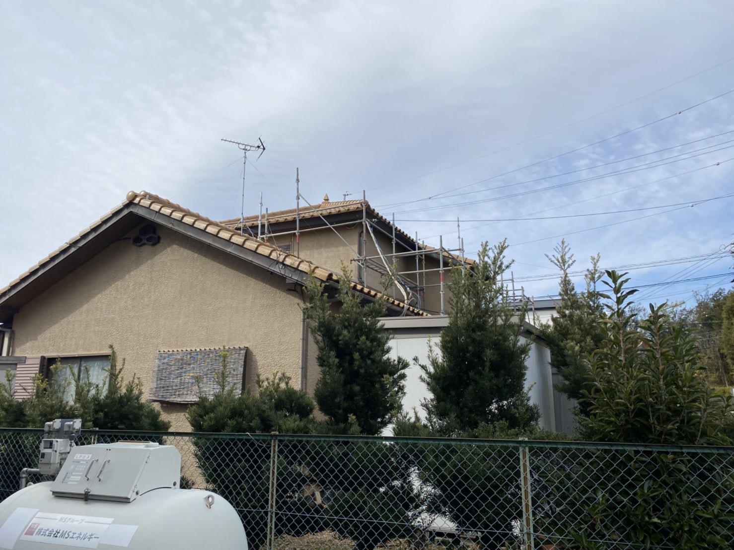 春日井市で改修工事の足場を組み立てました。